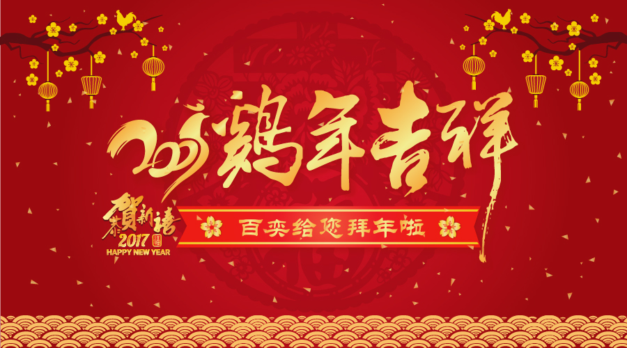 春节捎去百奕温暖如春的问候,祝您及家人拥有幸福甜美的鸡年,身体健康,万事如意!