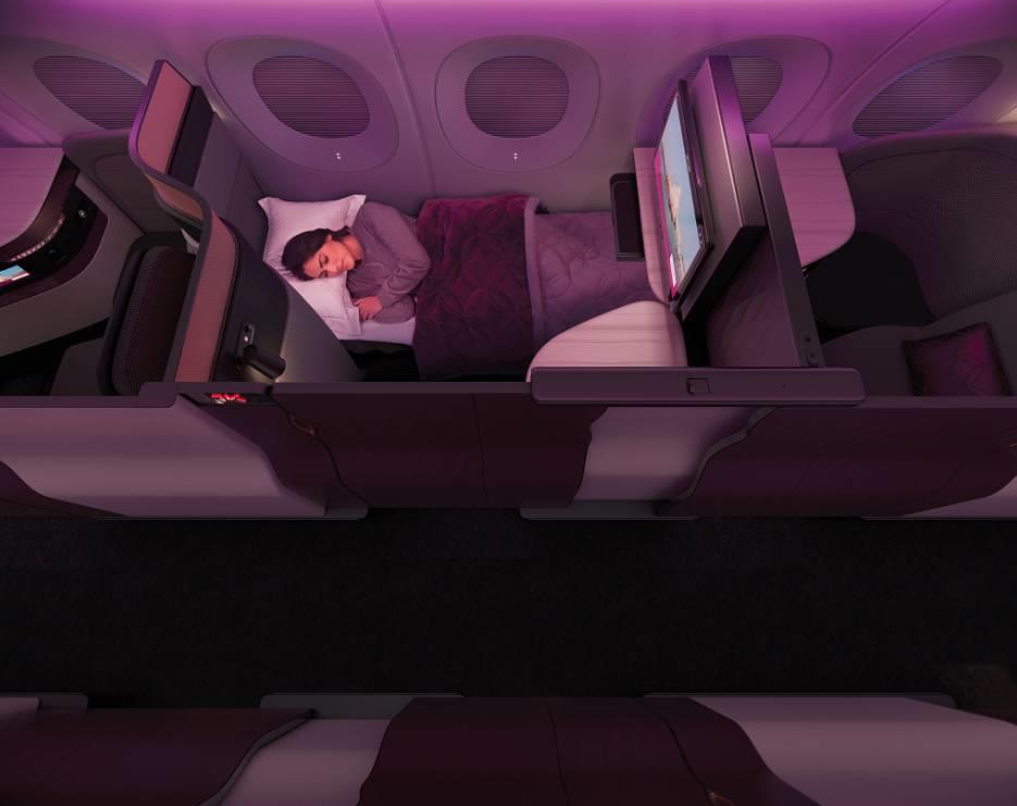 时间睡眠的旅客,QSuite可设置为“免打扰”模式和快速唤醒早餐服务。