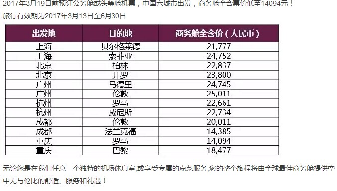 最后,让我们来了解下大家最关注的商务舱惊喜价格吧